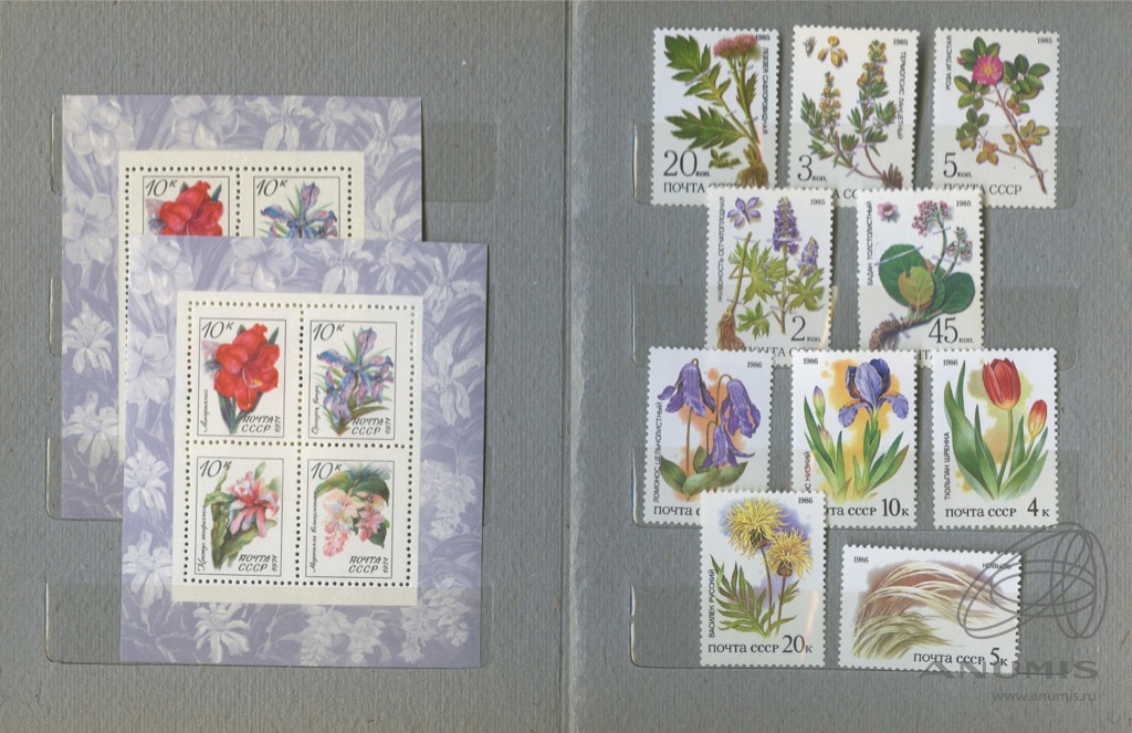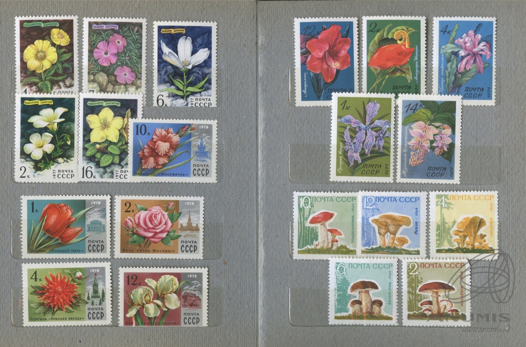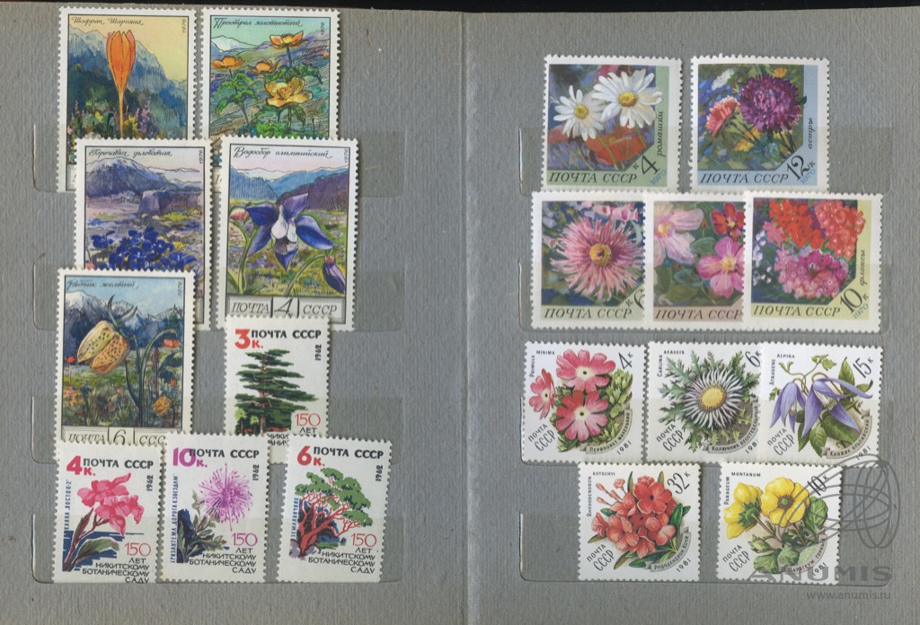 Альбом с коллекцией негашёных марок и блоков СССР «Флора», 101 шт, все марки и блоки чистые, все серии полные, альбом полностью заполнен, **. общая стоимость по каталогу Загорского ред.2021 г. = 2 700 руб. для **