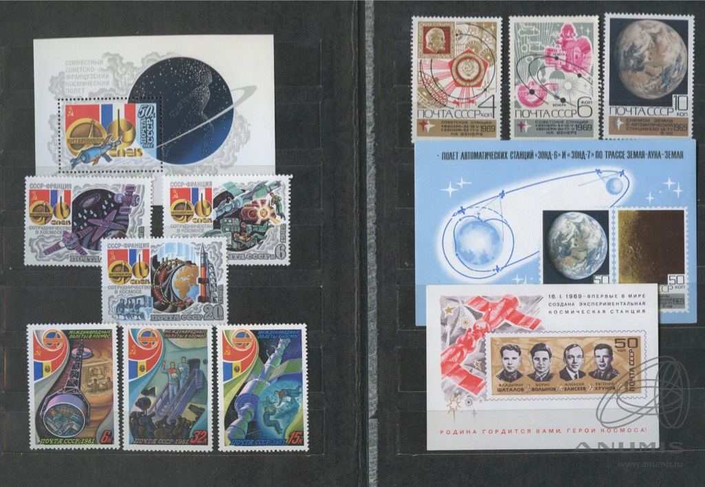 Альбом с коллекцией негашёных марок и блоков СССР «Космос», 121 шт, все марки и блоки чистые, все серии полные, альбом полностью заполнен, **. общая стоимость по каталогу Загорского ред.2021 г. = 3 650 руб. для **